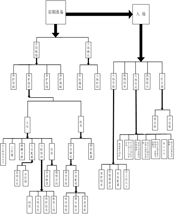 服务流程 1、负责人会跟客户有一个初步的沟通,对现场进行察看,根据实际情况制作一份合理的方案。 2、负责人跟客户进一步沟通,根据客户要求进行方案修改。 3、确定最终的方案,进行合同的签订。 4、入场:人员准备,现场察看,植物种类的了解以及移交。提交年度,月度工作计划表格。 5、现场植物生长状况的植物分析报告。 6、开始进行养护,配合客户对现场植物进行整改。 7、按季度进行客户满意度调查,半年后进行工作总结。